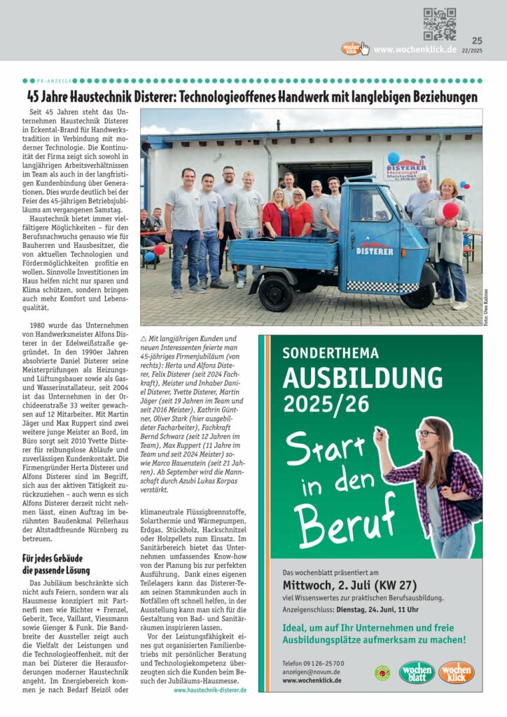 Mit langjährigen Kunden und neuen Interessenten feierte man 45-jähriges Firmenjubiläum (von rechts): Herta und Alfons Disterer, Felix Disterer (seit 2024 Fachkraft), Meister und Inhaber Daniel Disterer, Yvette Disterer, Martin Jäger (seit 19 Jahren im Team und seit 2016 Meister), Kathrin Güntner, Oliver Stark (hier ausgebildeter Facharbeiter), Fachkraft Bernd Schwarz (seit 12 Jahren im Team), Max Ruppert (11 Jahre im Team und seit 2024 Meister) sowie Marco Hauenstein (seit 21 Jahren). Ab September wird die Mannschaft durch Azubi Lukas Korpas verstärkt.
